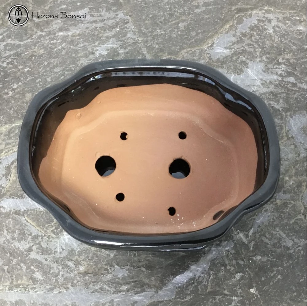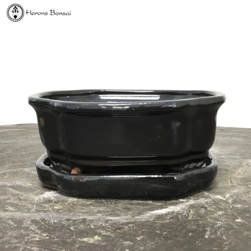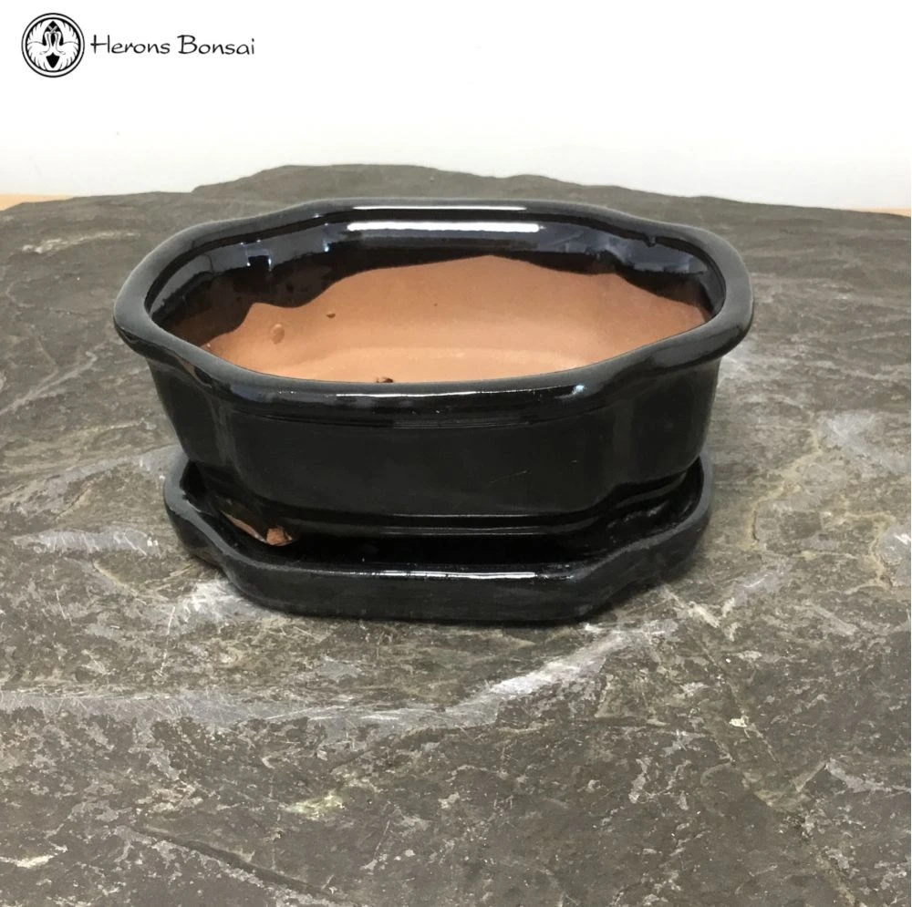 Black Irregular Bonsai Pot with matching drip tray. Recommended for indoor use.