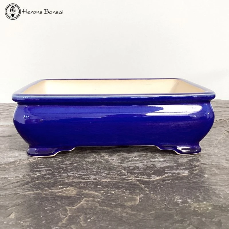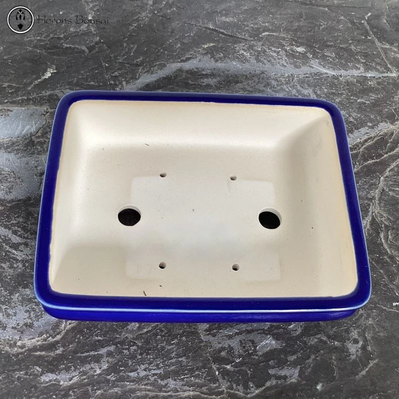 Lovely quality rectangular blue glazed bonsai pot