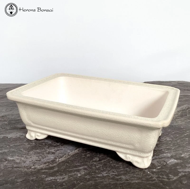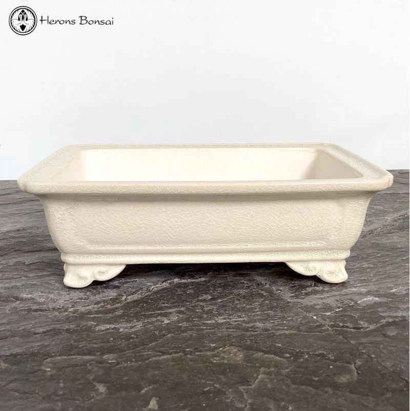 Lovely quality rectangular cream crackle glazed bonsai pot