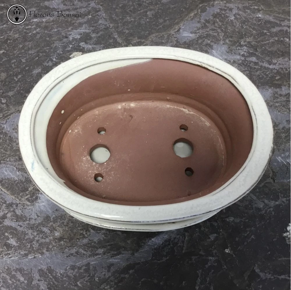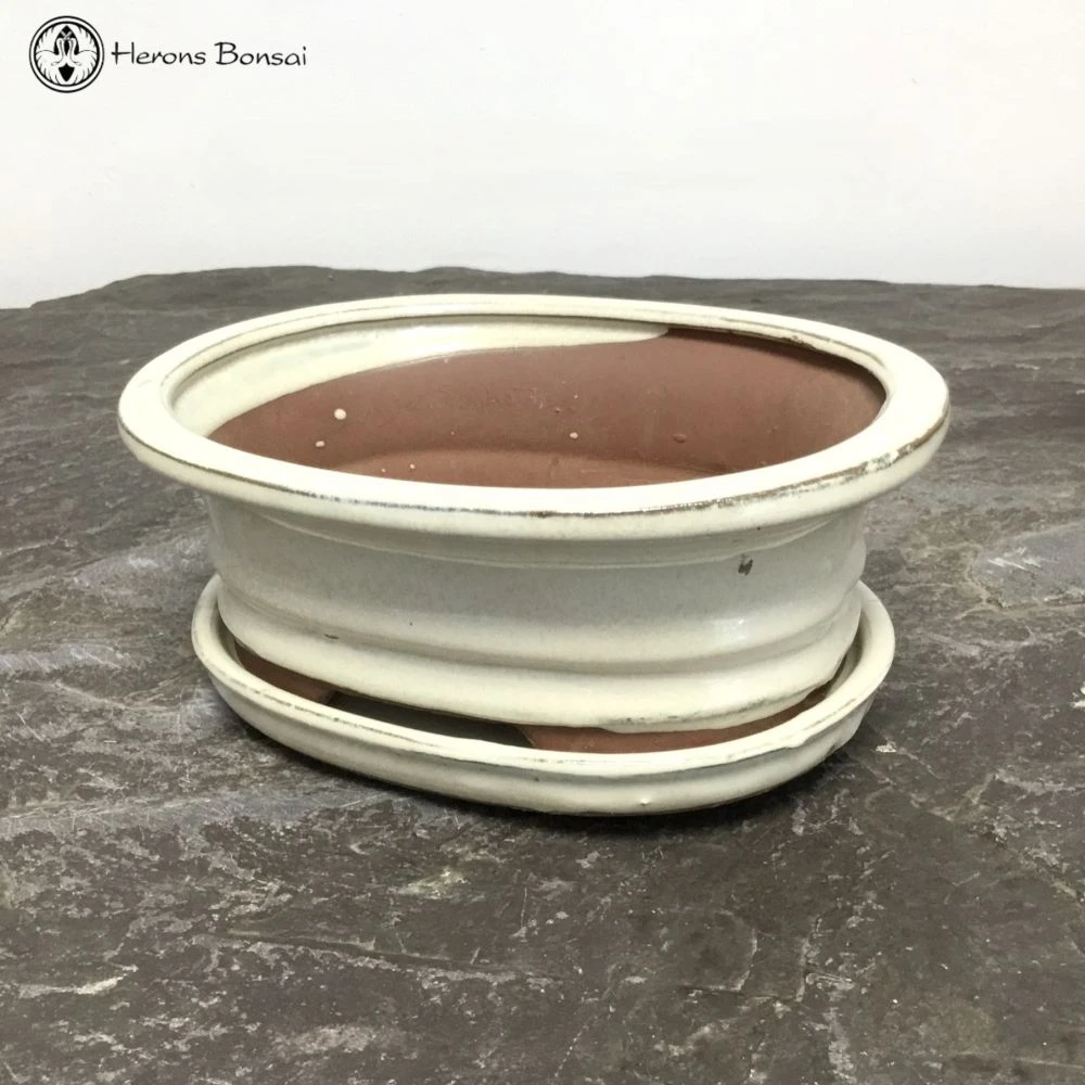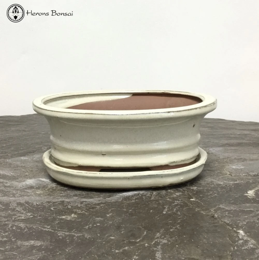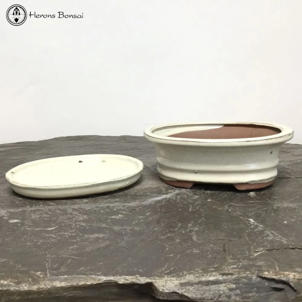 Cream Oval Bonsai Pot with matching drip tray. Recommended for indoor use.