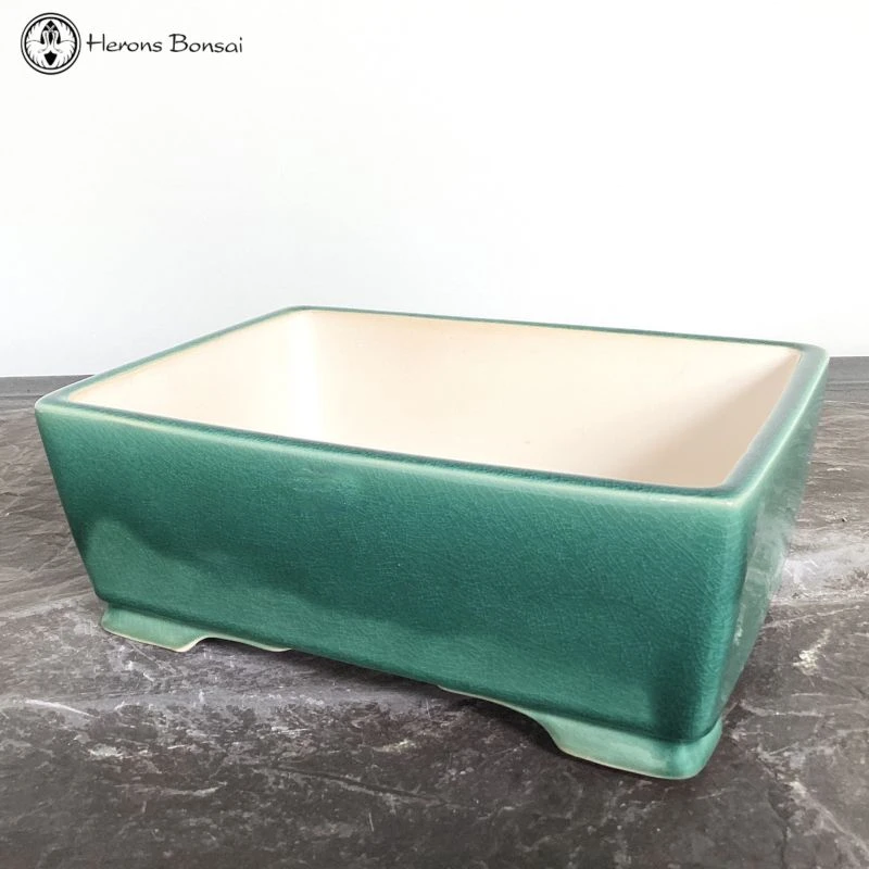 High Quality Green Crackle Glaze Rectangle Ceramic Bonsai Pot