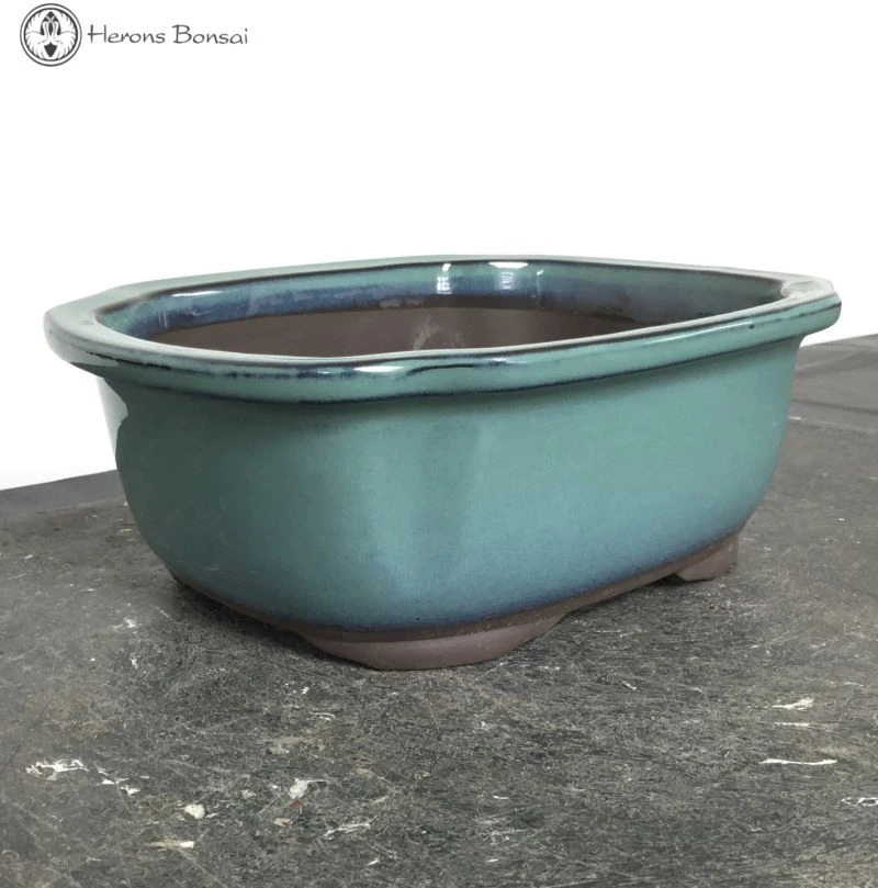 Japanese Turquoise Irregular Ceramic Bonsai Pot