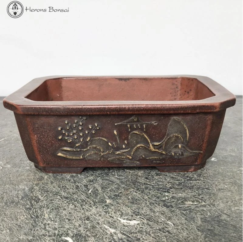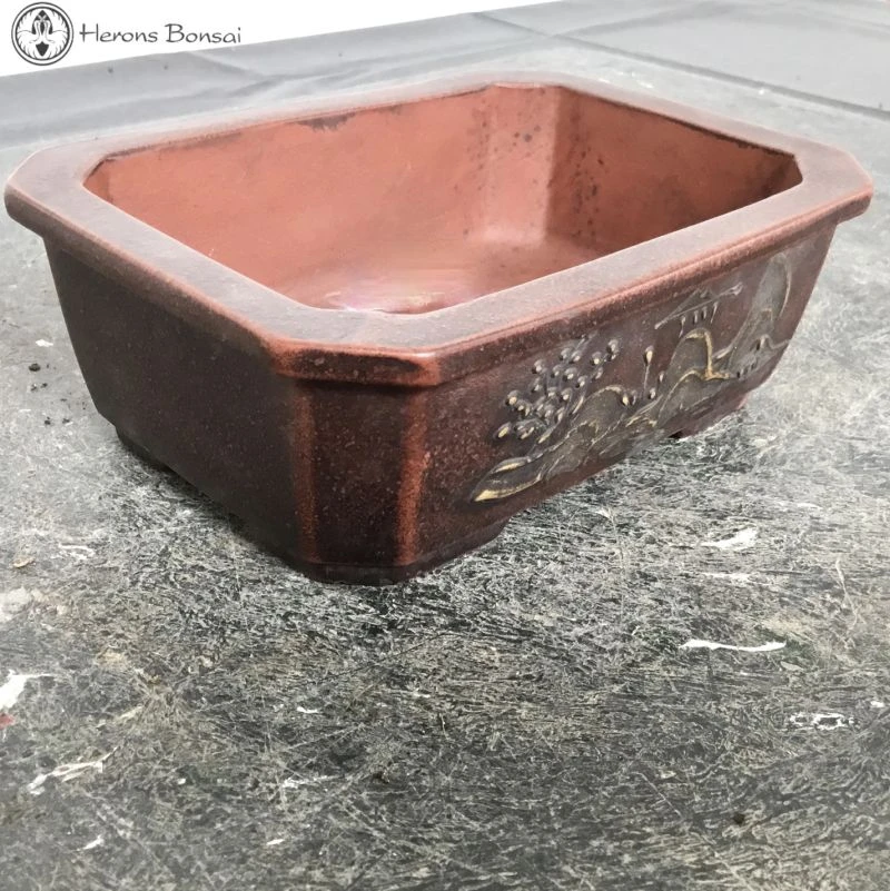 Unglazed Rectangle Ceramic Bonsai Pot with Chinese decoration
